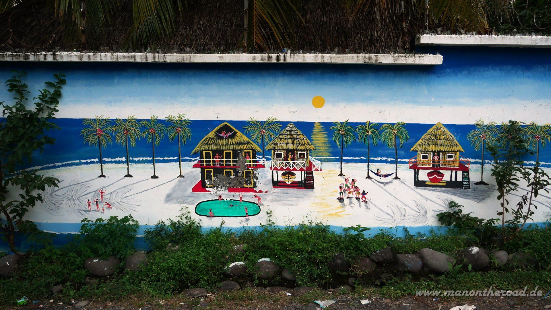 Das kleine Städtchen Perulapia fällt uns schon bei der Durchfahrt durch seine vielfältigen und bunt gestalteten Murales auf. An jeder Ecke findet man ein neues, liebevoll gestaltetes Motiv aus dem täglichen Leben oder der Natur. Wir schauen uns den Ort genauer an und werden noch von Einheimischen auf die moderne und besonders gestaltete Kirche hingewiesen, die zum Wahrzeichen der Stadt geworden ist.