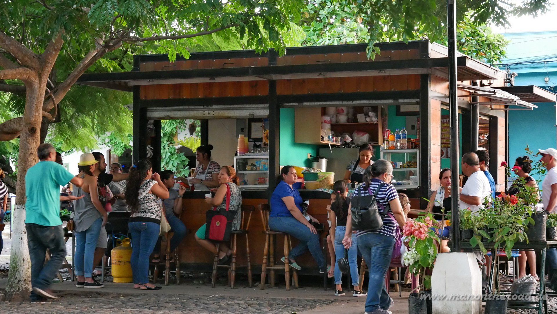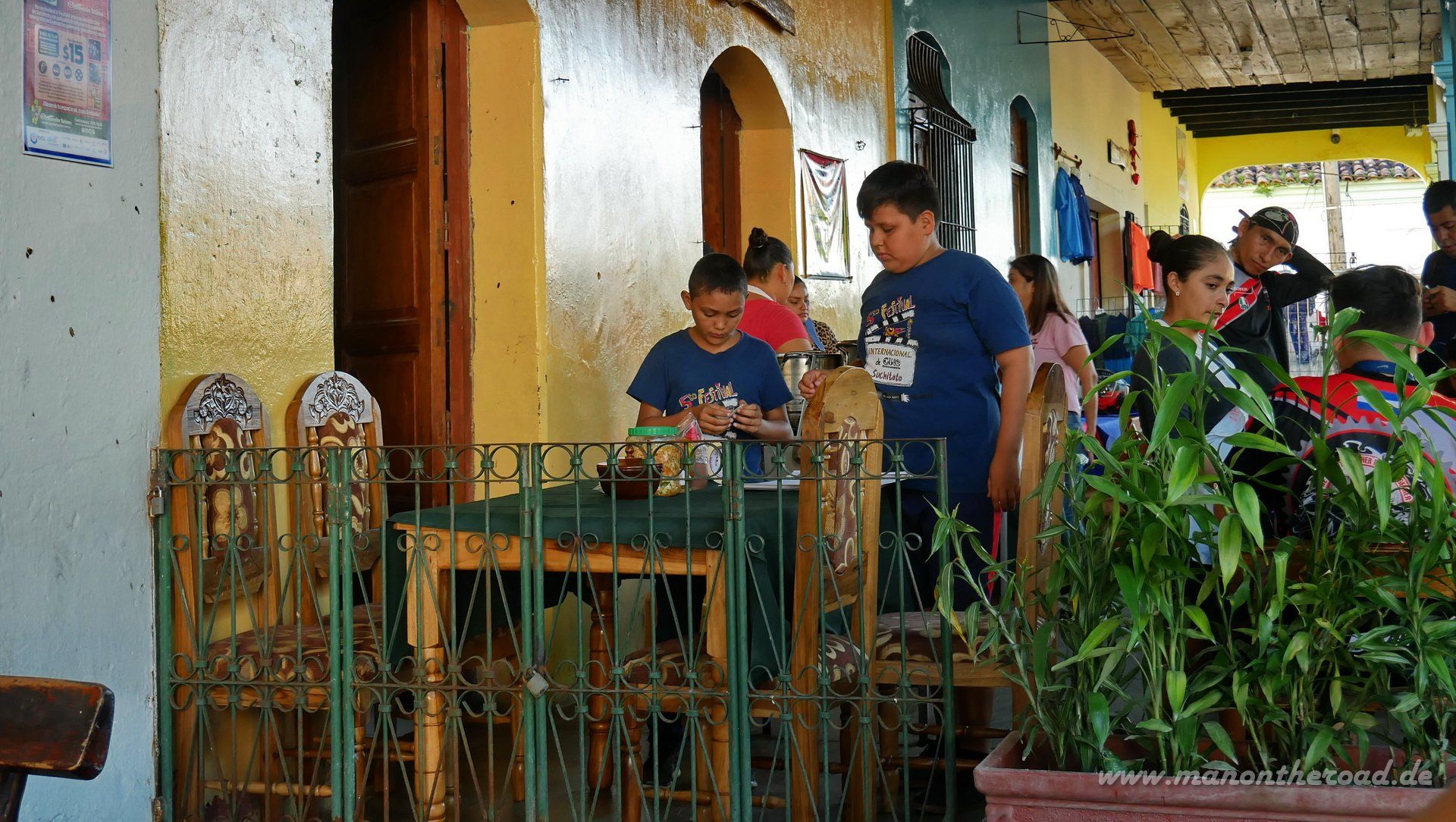 Wir kommen nach Ateco de Concepcion, einer kleinen Stadt am Fusse eines Vulkans. An einem kleinen Hotel können wir auf dem Parkplatz stehen und in deren wunderschönem Restaurant mit Ausblick auf den Vulkan einen guten einheimischen Kaffee genießen. Die geschäftige kleine Stadt ist sehr bunt und sehr laut, viele der Häuser sind mit phantasievoller Bemalung verziert.