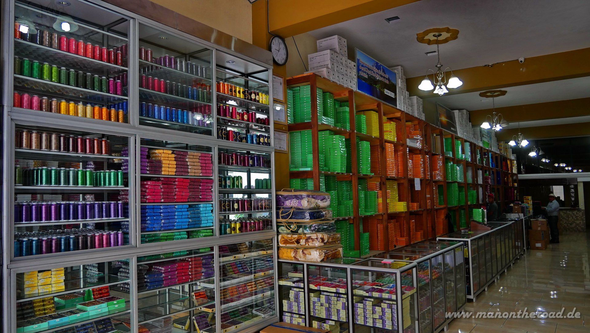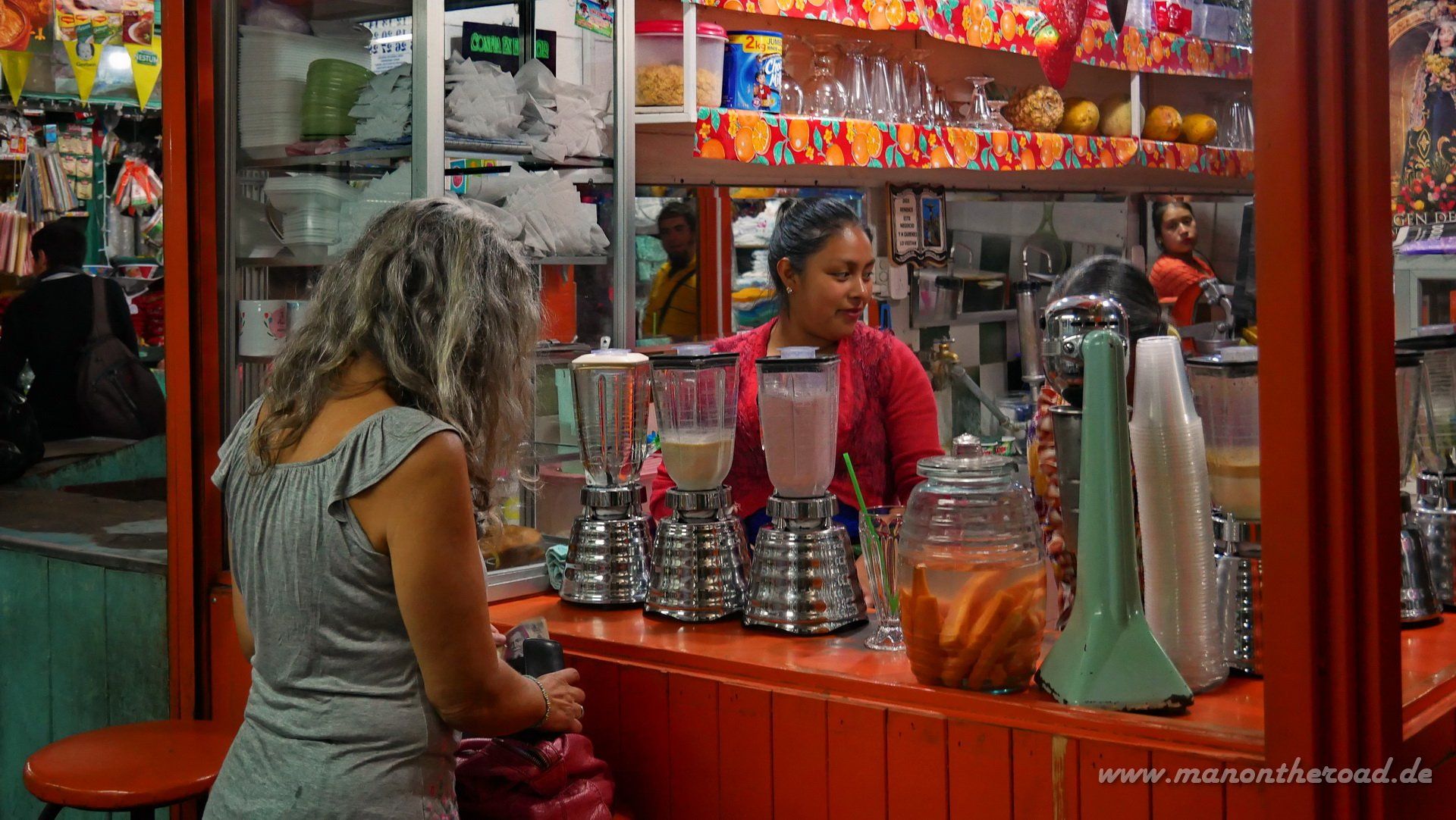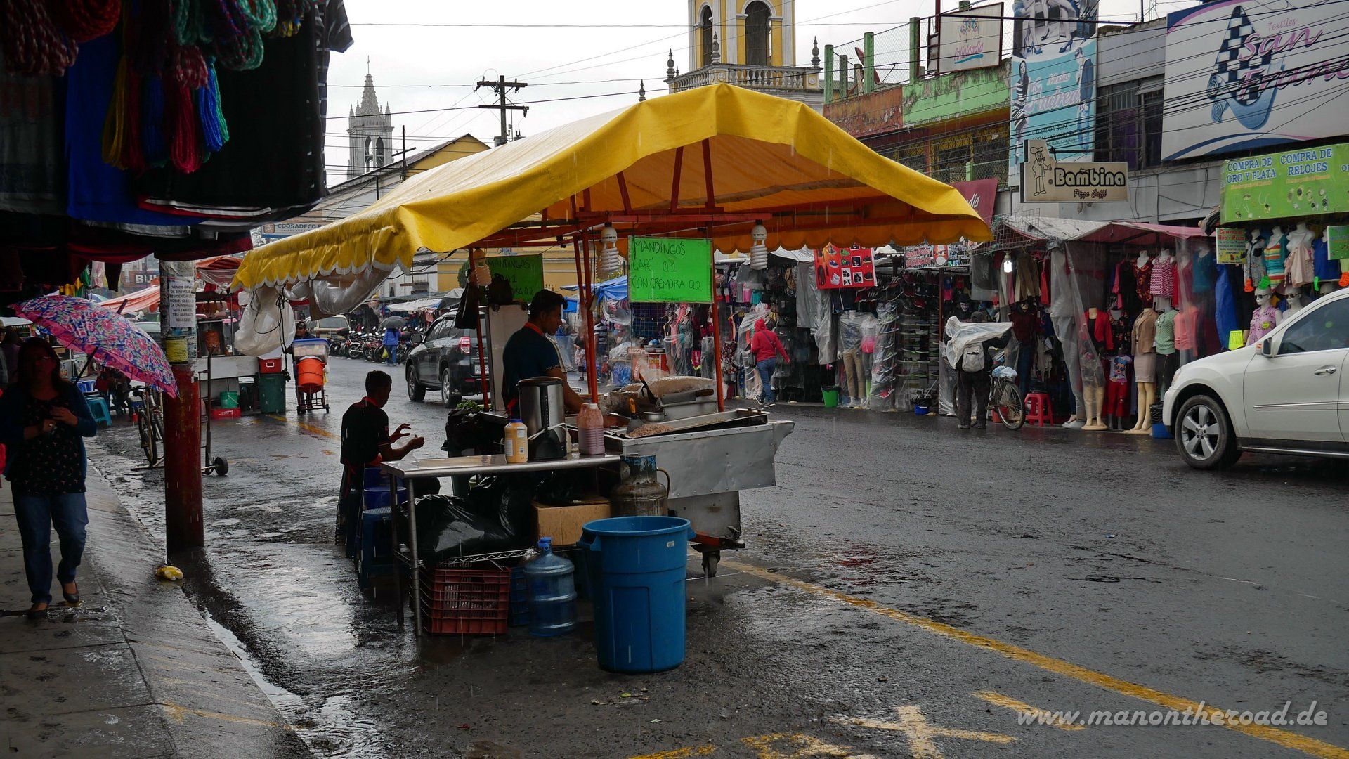 Wir kaufen Gemüse und Obst auf dem Markt und lassen uns von den extremen Geräuschen und Gerüchen berieseln. Überall gibt es Liquados de Frutas - also Smoothies. Das habe ich in Mexiko total vermisst. Besonders lecker sind Liquados de Sandia (Wassermelone). Aus jedem Laden dröhnt eine andere Musik, die Laster brettern durch die Gassen, es wird gehupt, was das Zeug hält..... Nichts für empfindliche Ohren und Nasen. Der Ort Salcajá ist bekannt für seine unzähligen Webereien und die dazugehörigen Geschäfte mit Nähgarn und weiterem Nähzubehör.