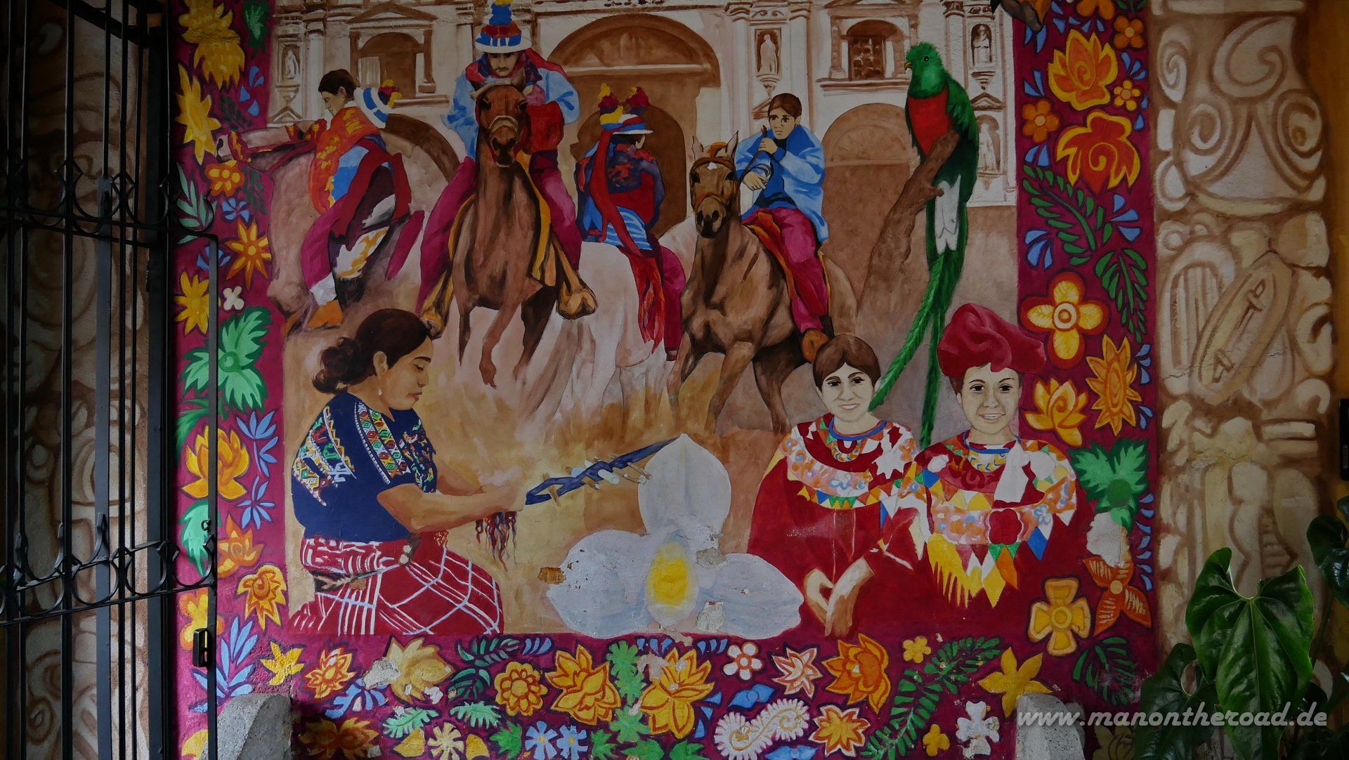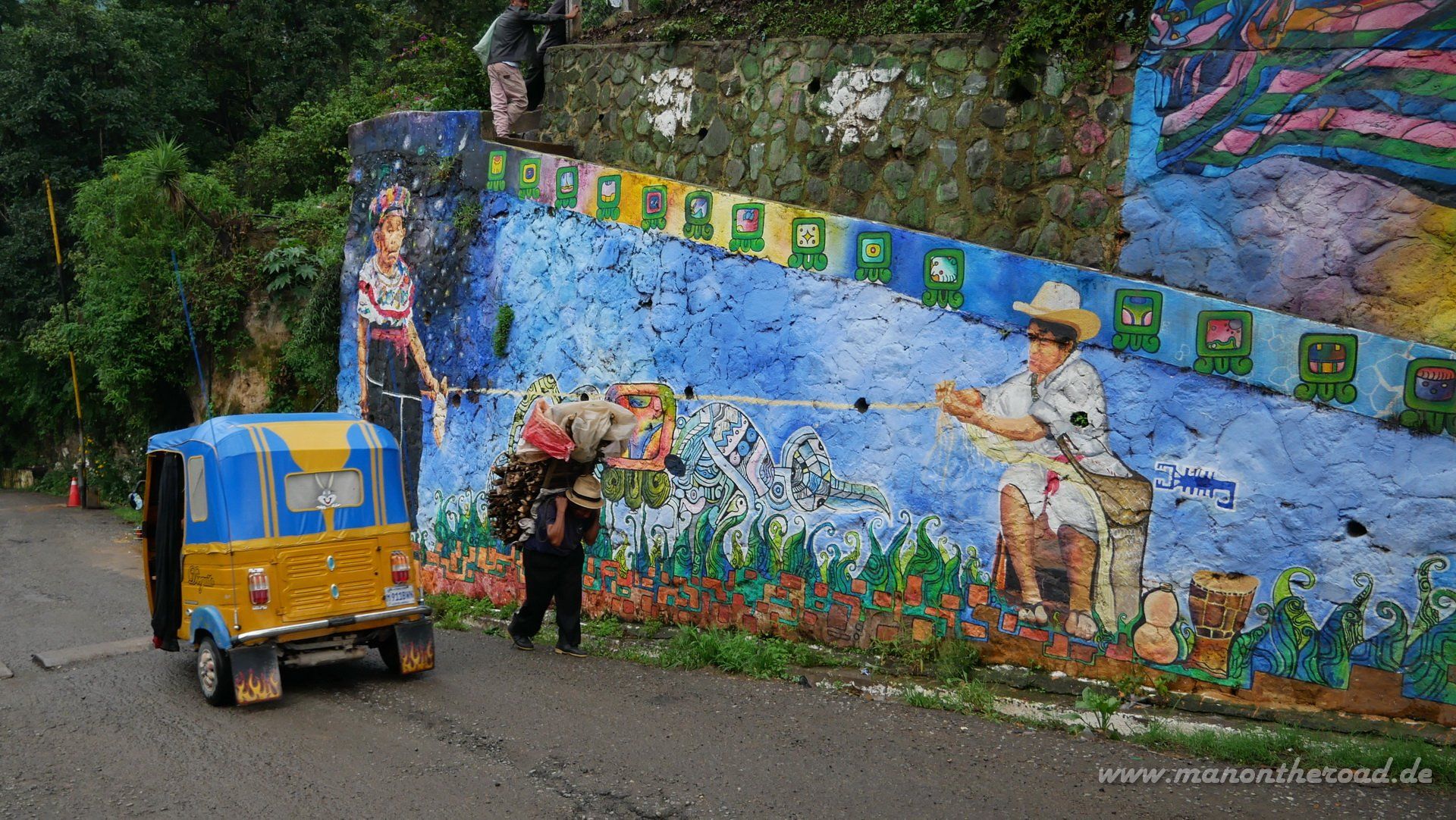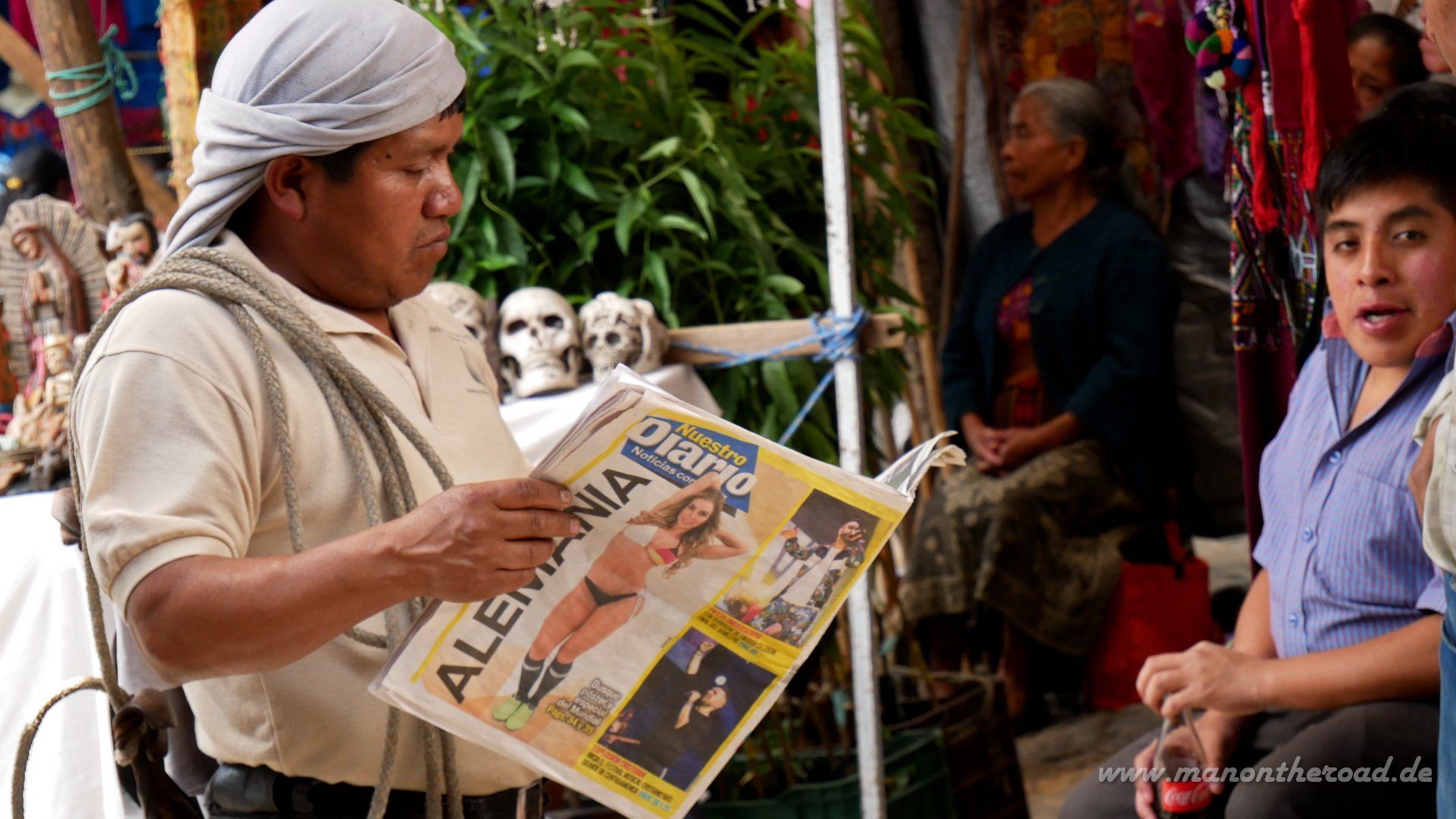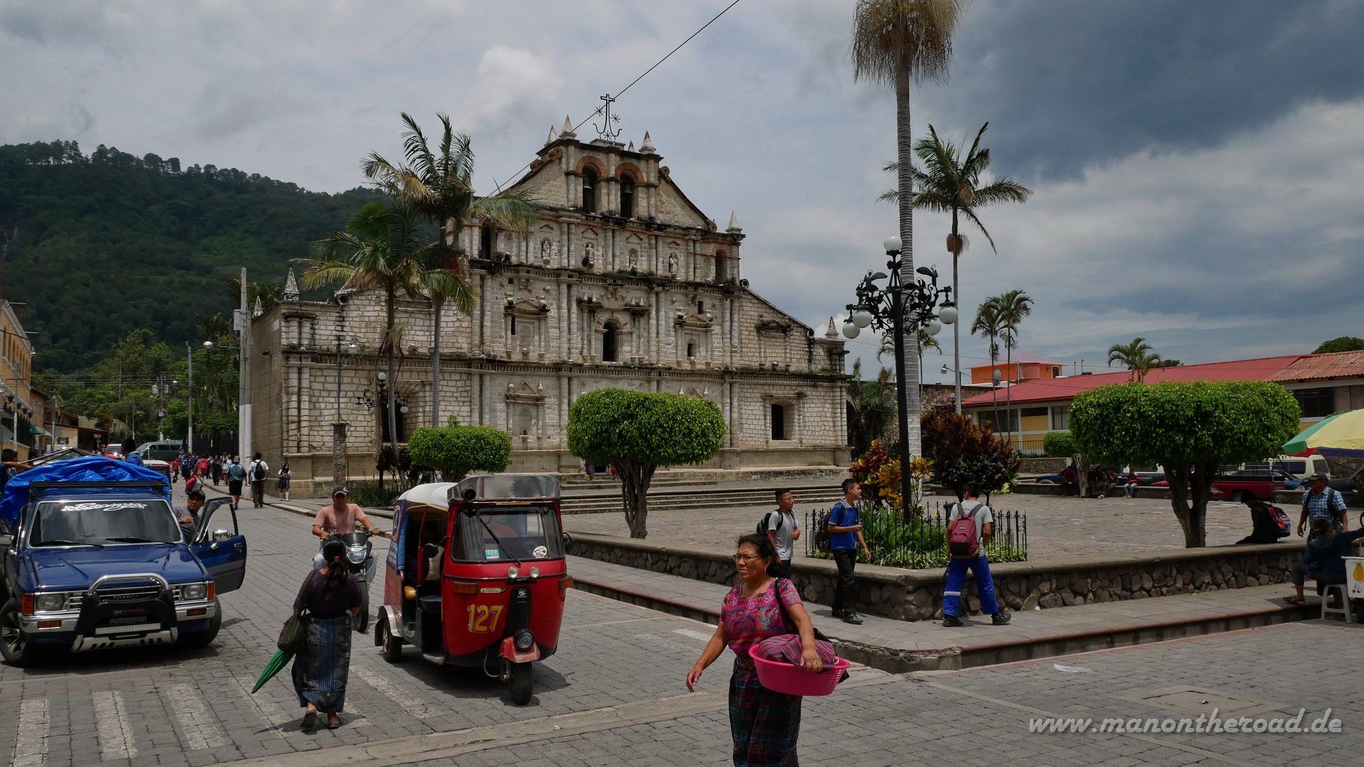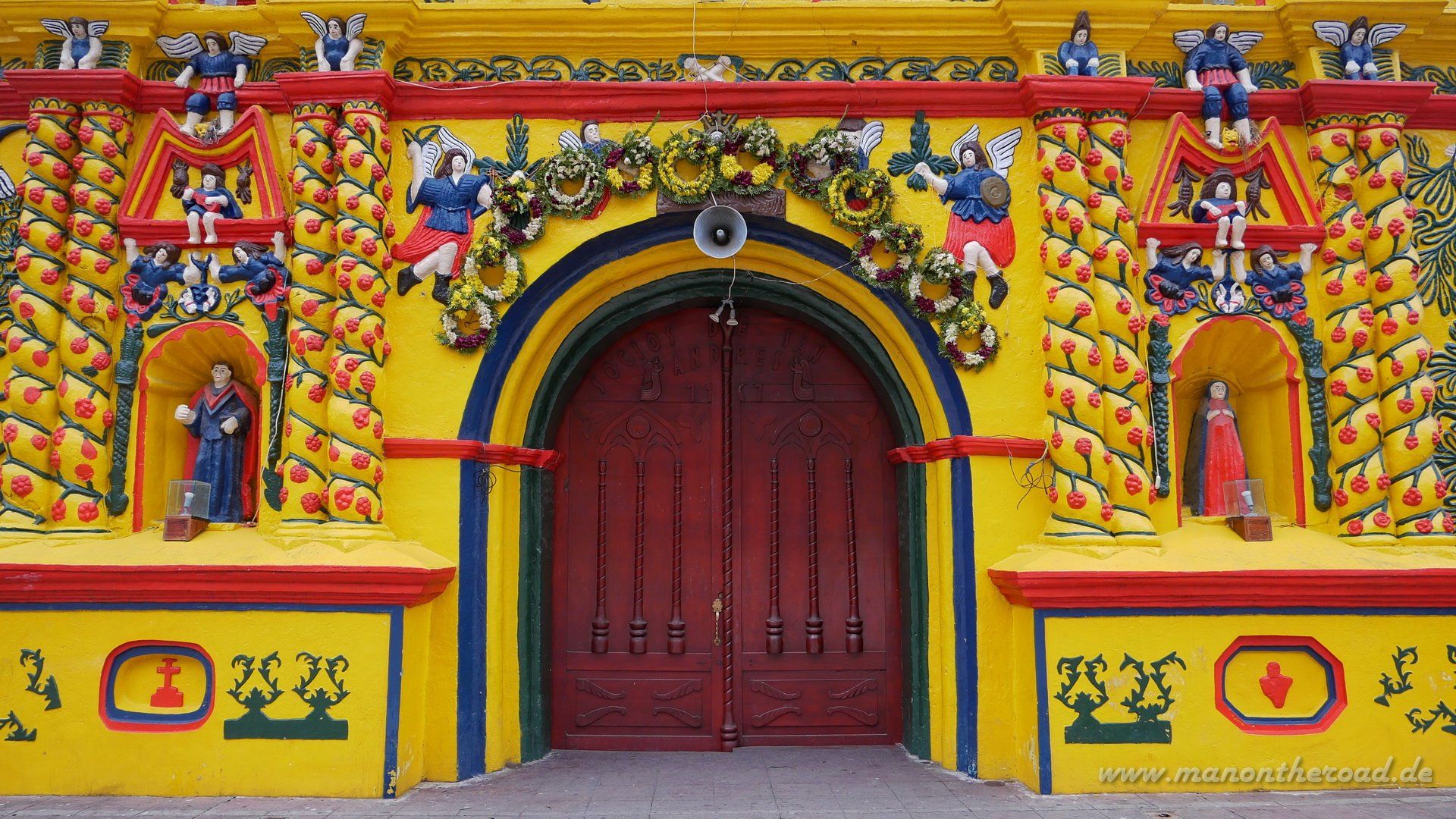 Von hier fahren wir weiter nach San Andres Xecul um uns die berühmteste Kirchenfassade in Guatemala anzuschauen. Abgesehen von der wirklich sehr verspielten und liebevoll bemalten Fassade hat der Ort nichts ausser ärmlichen und verdreckten Gassen zu bieten.