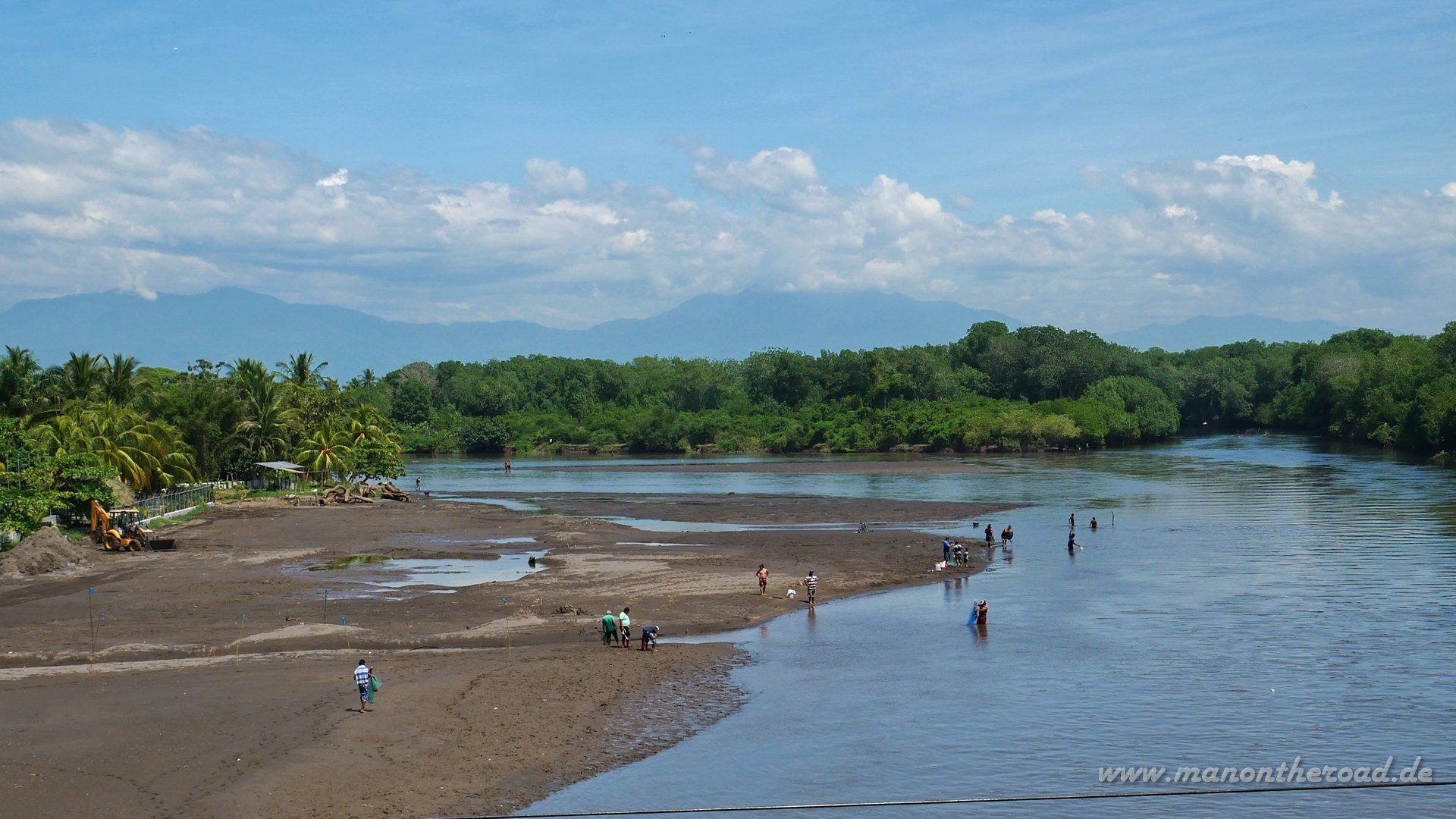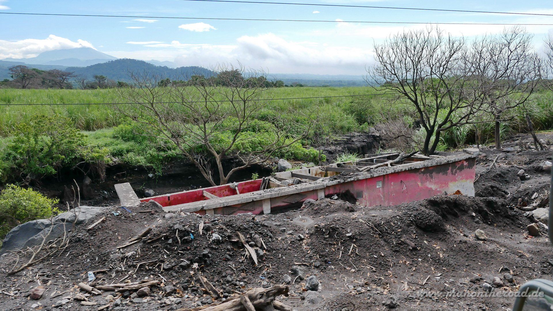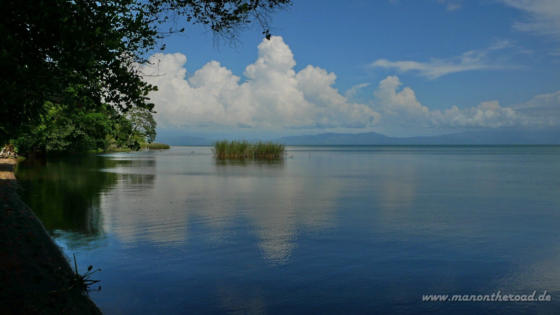 Man kann von hieraus den weiteren Weg in Richtung El Salvador um ca. 80 km abkürzen, wenn man mit einem Ponton die rund 3 km durch die Lagune fährt. In Anbetracht des überaus schwindeligen Gefährts lege ich hier mein Veto ein und wir nehmen stattdessen die Teerstrasse, da wir den Einstieg in eine Piste, die uns von Marek und Katja empfohlen wurde, leider verpassen.