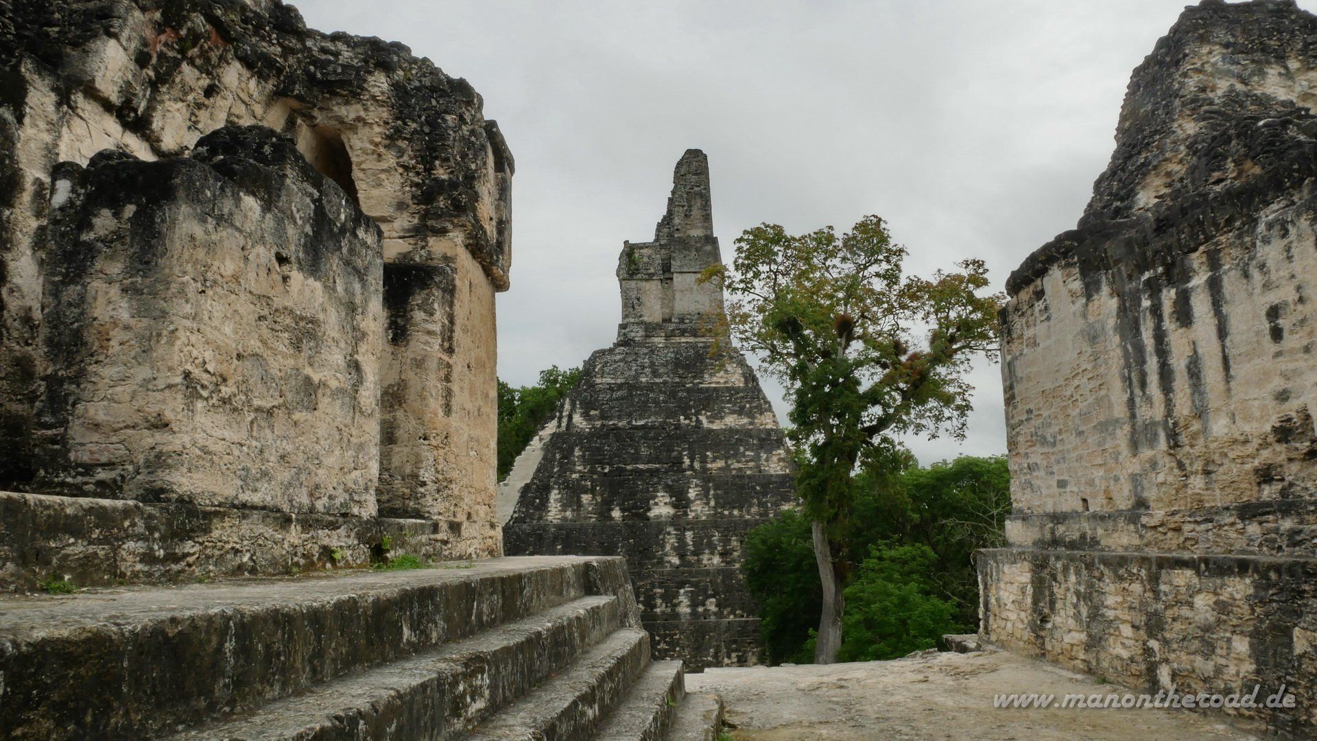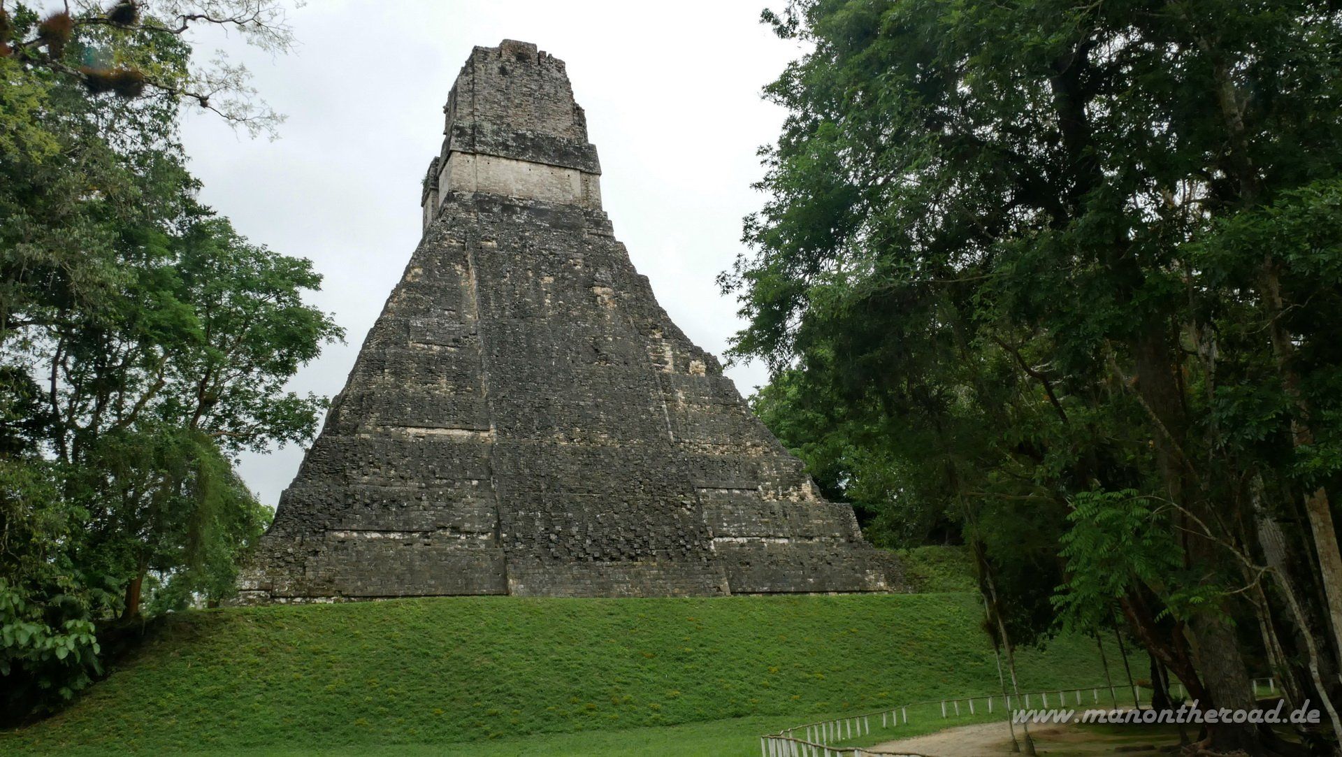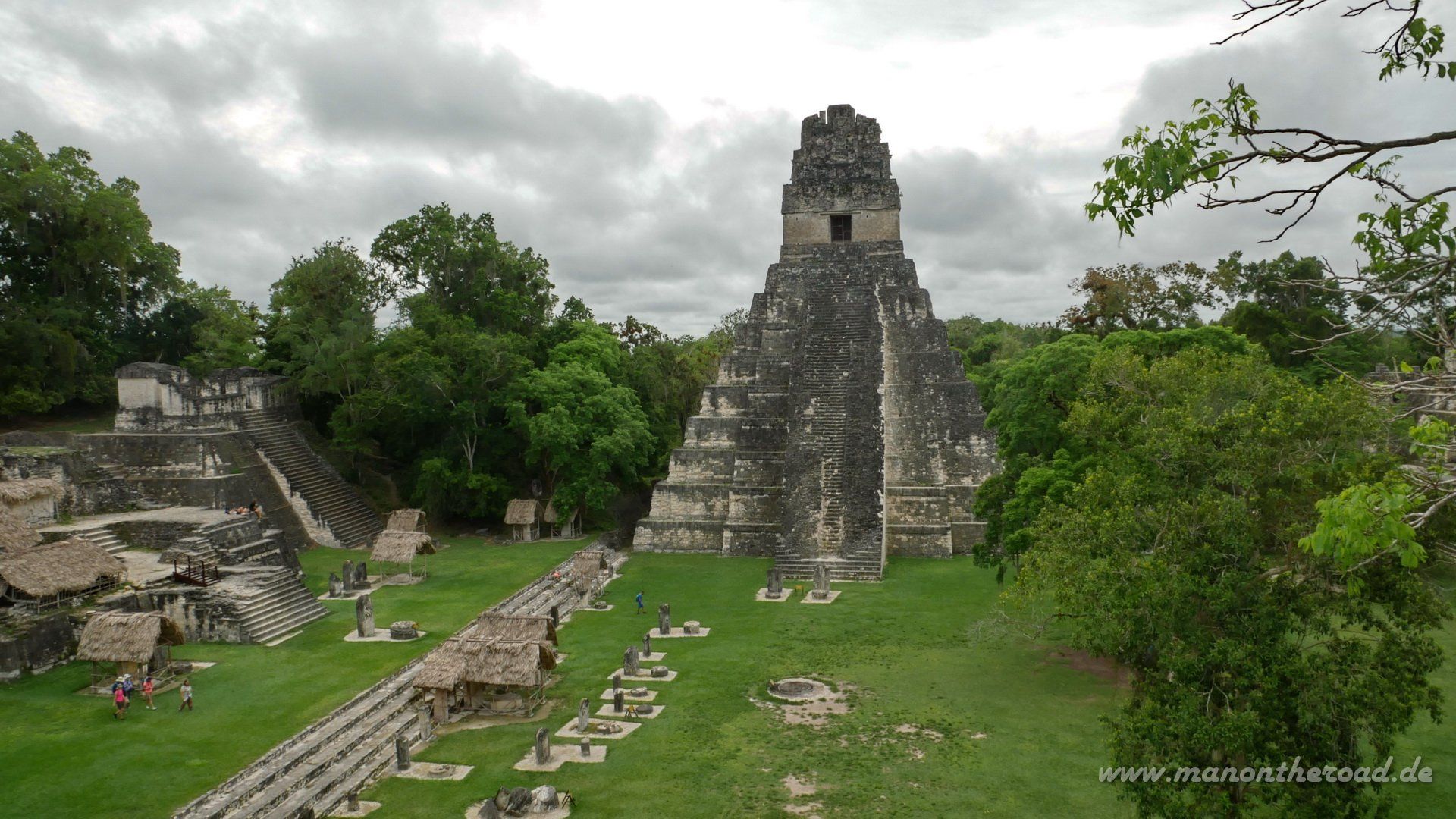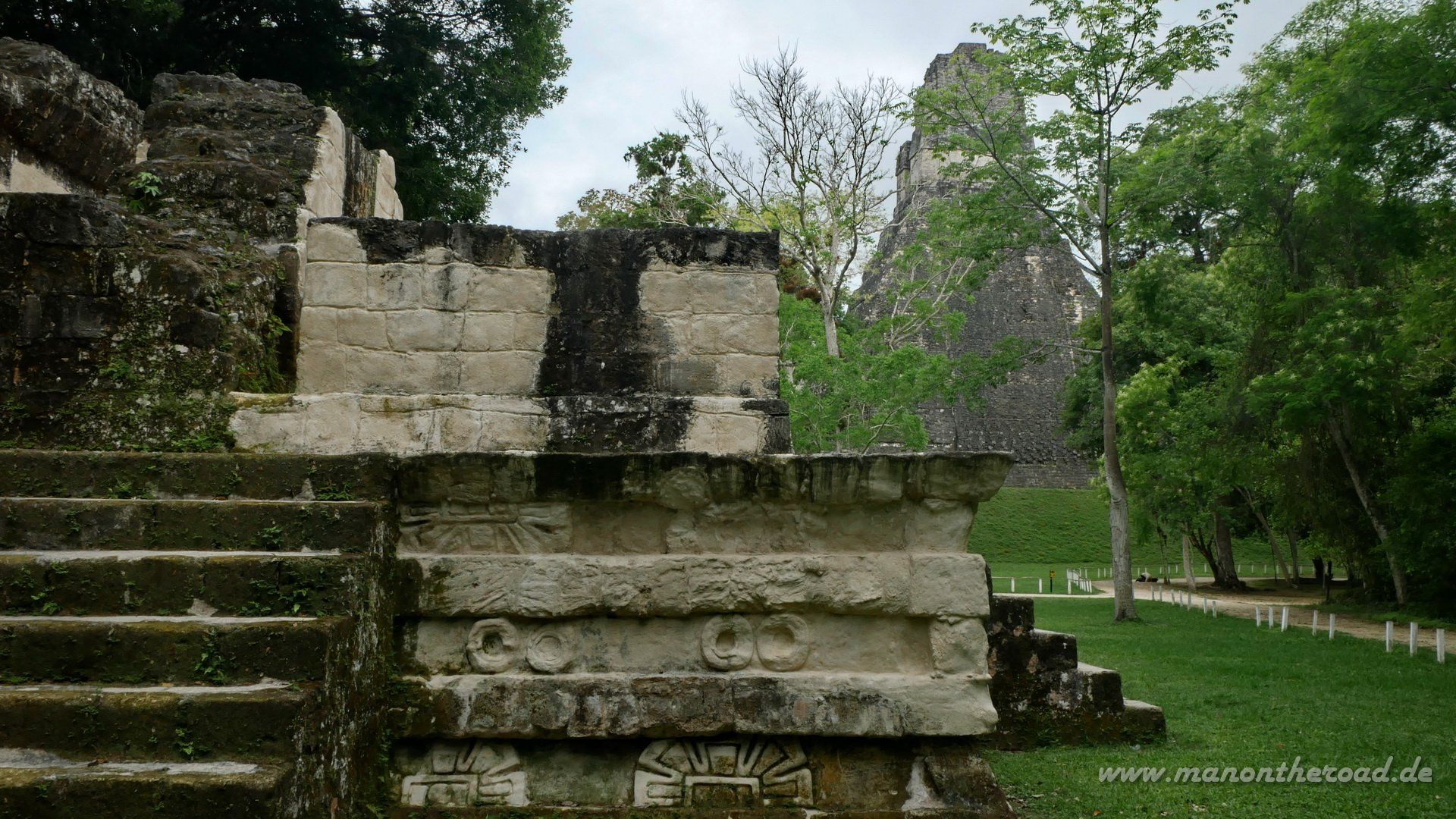 Unsere nächste Anlaufstelle ist die berühmte Maya-Ausgrabung Tikal. Leider gestaltet sich das Buchen eines Zimmers dort eher unangenehm. Die Preise sind unverschämt und das wollen die beiden nicht ausgeben, zumal im Internet-Portal booking.com die angegebenen Übernachtungspreise extrem niedriger sind. Nachdem wir das 3. Hotel abgeklappert haben, wollen die beiden über das Portal das Zimmer reservieren. Der Hotel-Mensch will dafür aber nicht das WiFi-Passwort rausrücken. Also bestellen die beiden im Restaurant ein Bier und bekommen dann das Passwort. Obwohl das Hotel komplett leer ist, bekommen die beiden dann ein Zimmer, welches völlig abgelegen nach einem weiten Marsch durch Dschungellandschaft im Dunkel zu erreichen ist. Auf der Treppe sitzt dann auch gleich zur Begrüßung eine Tarantel! Auch unser Stellplatz auf der grünen Wiese ist eine Zumutung. Die ganze Anlage ist völlig unbeleuchtet und man sieht die Hand nicht vor Augen. Wenn wir nicht mit einer starken Taschenlampe nach David und Claudia auf die Suche gegangen wären, hätten die uns zum Abendessen nie gefunden. Die Anlage selbst war sehr schön, aber für Michael und mich, die ja bereits vorher einige Maya-Ausgrabungen gesehen hatten, nicht mehr so aufregend. Dazu kam die beinahe unerträgliche Hitze und Schwüle. David hat ausserdem jetzt starke Übelkeit und muss sich in der Anlage übergeben. Als wir die Anlage verlassen wollen, geht bereits der nächste Stress los. Angeblich hätten wir nicht fürs Campen bezahlt. Wir haben aber am Abend zuvor dem einweisenden Mann das Geld gegeben. Es wird behauptet, er sei überhaupt nicht berechtigt gewesen. Also bin ich dann noch ewig von Einem zum Anderen gerannt um die Angelegenheit zu klären. Plötzlich waren alle irgendwo verschwunden und wir sind ziemlich genervt einfach weitergefahren, ohne noch weiter zu Fragen. Alles in Allem hat uns Tikal eher genervt.