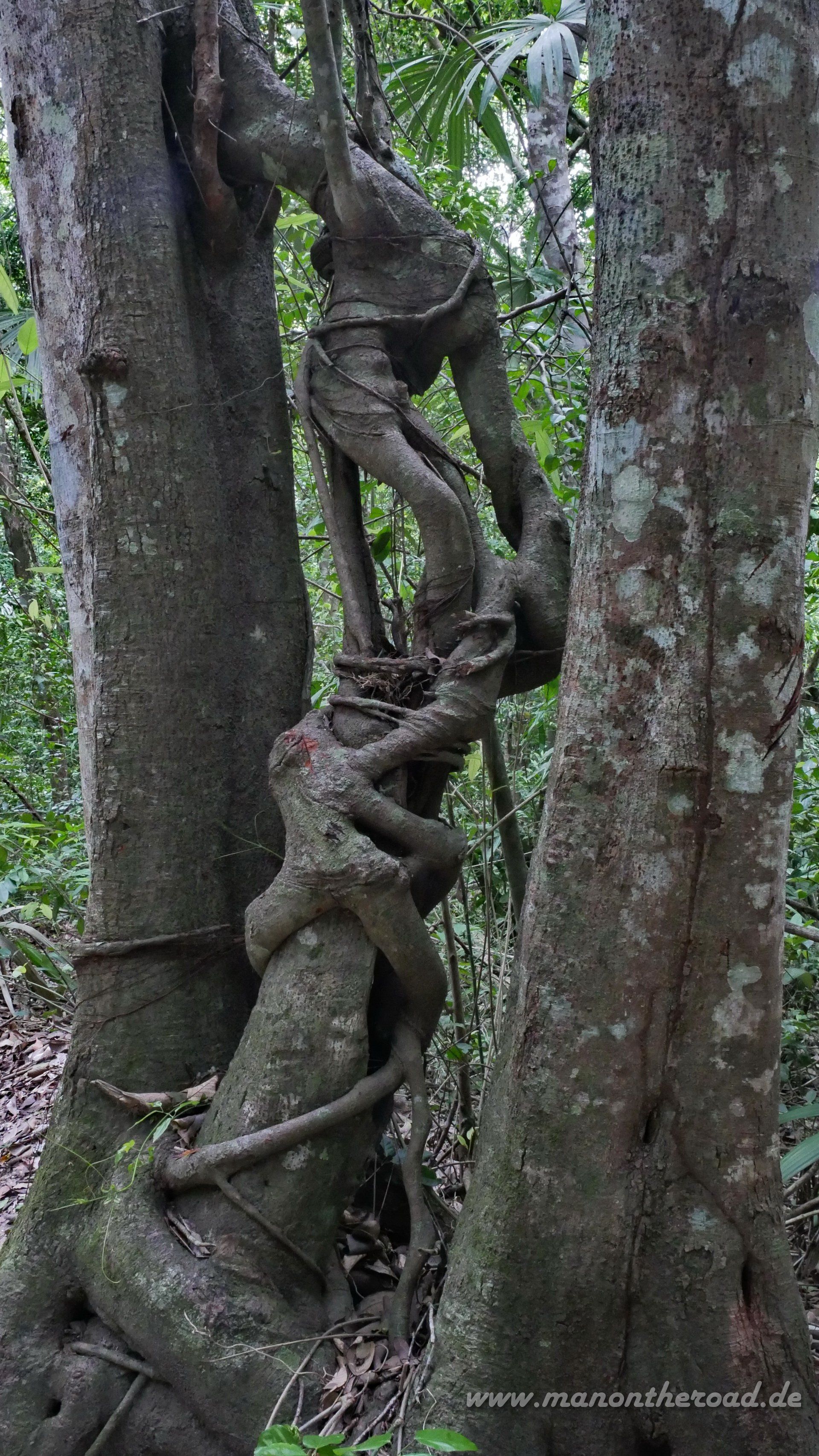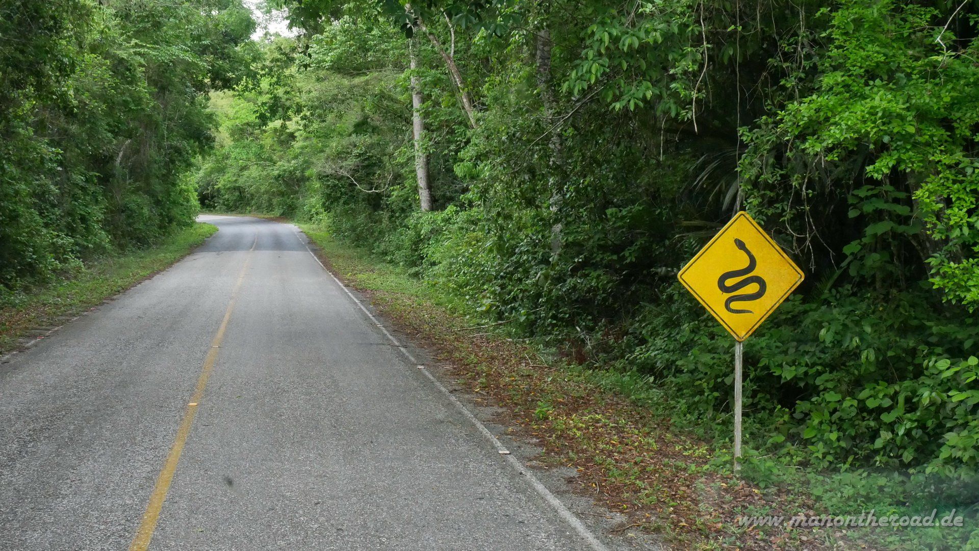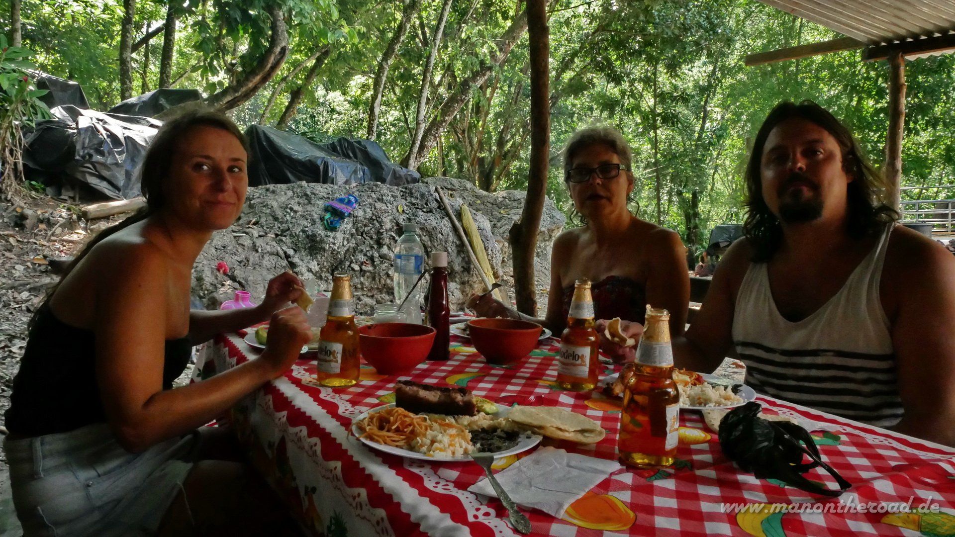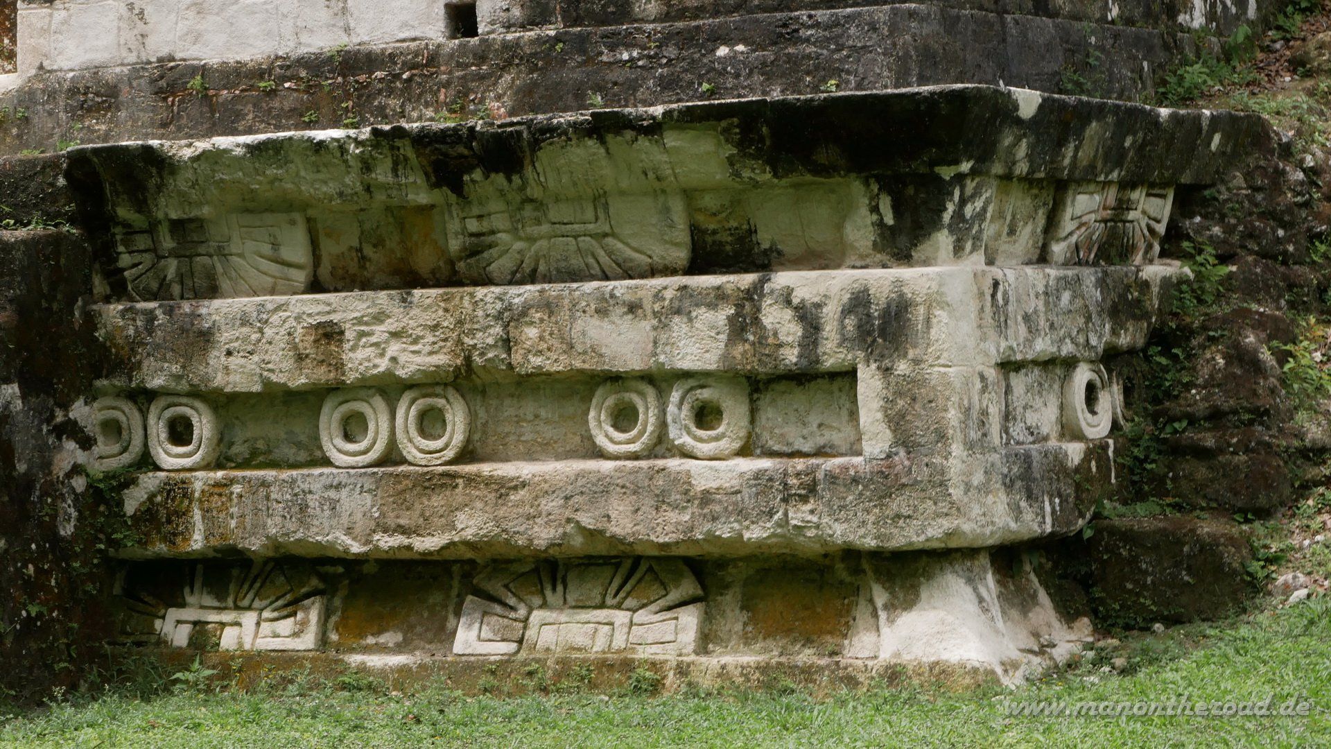 Unsere nächste Anlaufstelle ist die berühmte Maya-Ausgrabung Tikal. Leider gestaltet sich das Buchen eines Zimmers dort eher unangenehm. Die Preise sind unverschämt und das wollen die beiden nicht ausgeben, zumal im Internet-Portal booking.com die angegebenen Übernachtungspreise extrem niedriger sind. Nachdem wir das 3. Hotel abgeklappert haben, wollen die beiden über das Portal das Zimmer reservieren. Der Hotel-Mensch will dafür aber nicht das WiFi-Passwort rausrücken. Also bestellen die beiden im Restaurant ein Bier und bekommen dann das Passwort. Obwohl das Hotel komplett leer ist, bekommen die beiden dann ein Zimmer, welches völlig abgelegen nach einem weiten Marsch durch Dschungellandschaft im Dunkel zu erreichen ist. Auf der Treppe sitzt dann auch gleich zur Begrüßung eine Tarantel! Auch unser Stellplatz auf der grünen Wiese ist eine Zumutung. Die ganze Anlage ist völlig unbeleuchtet und man sieht die Hand nicht vor Augen. Wenn wir nicht mit einer starken Taschenlampe nach David und Claudia auf die Suche gegangen wären, hätten die uns zum Abendessen nie gefunden. Die Anlage selbst war sehr schön, aber für Michael und mich, die ja bereits vorher einige Maya-Ausgrabungen gesehen hatten, nicht mehr so aufregend. Dazu kam die beinahe unerträgliche Hitze und Schwüle. David hat ausserdem jetzt starke Übelkeit und muss sich in der Anlage übergeben. Als wir die Anlage verlassen wollen, geht bereits der nächste Stress los. Angeblich hätten wir nicht fürs Campen bezahlt. Wir haben aber am Abend zuvor dem einweisenden Mann das Geld gegeben. Es wird behauptet, er sei überhaupt nicht berechtigt gewesen. Also bin ich dann noch ewig von Einem zum Anderen gerannt um die Angelegenheit zu klären. Plötzlich waren alle irgendwo verschwunden und wir sind ziemlich genervt einfach weitergefahren, ohne noch weiter zu Fragen. Alles in Allem hat uns Tikal eher genervt.