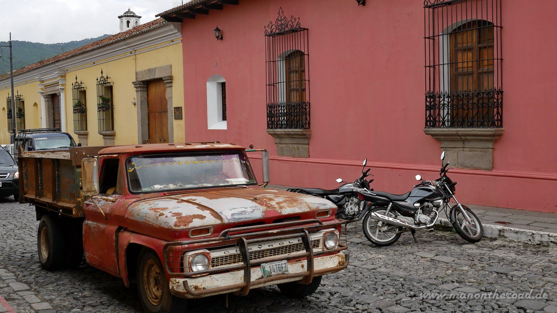 Wir beschließen, noch einmal für ein oder zwei Tage ins schöne Antigua zu fahren. Auf dem Platz der Touristenpolizei, den wir erneut ansteuern, steht bereits der MAN von Irmgard und Klaus. Mit den Beiden verbringen wir dort noch die nächsten beiden Tage und genießen den morbiden Charme dieser alten Stadt.