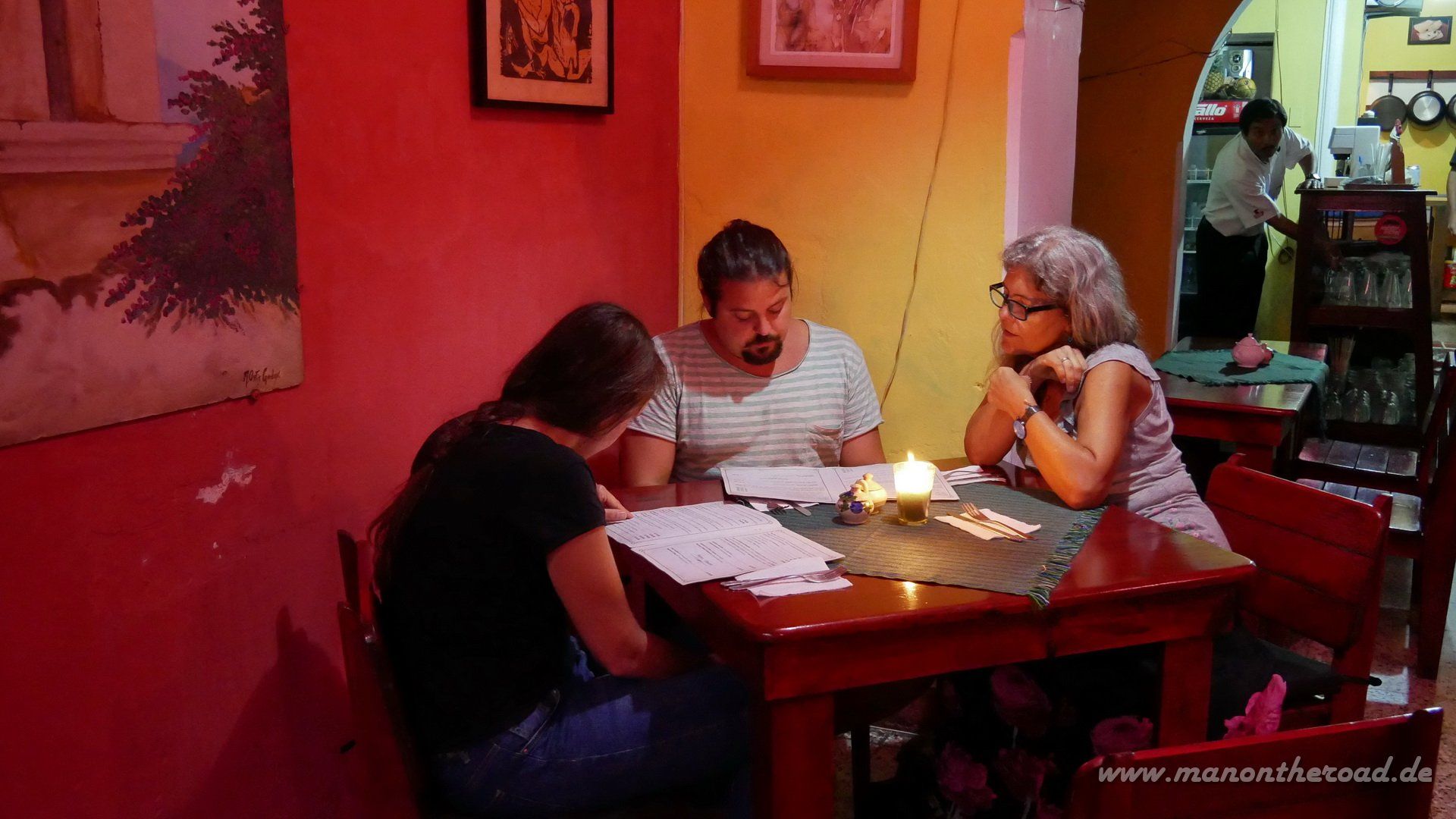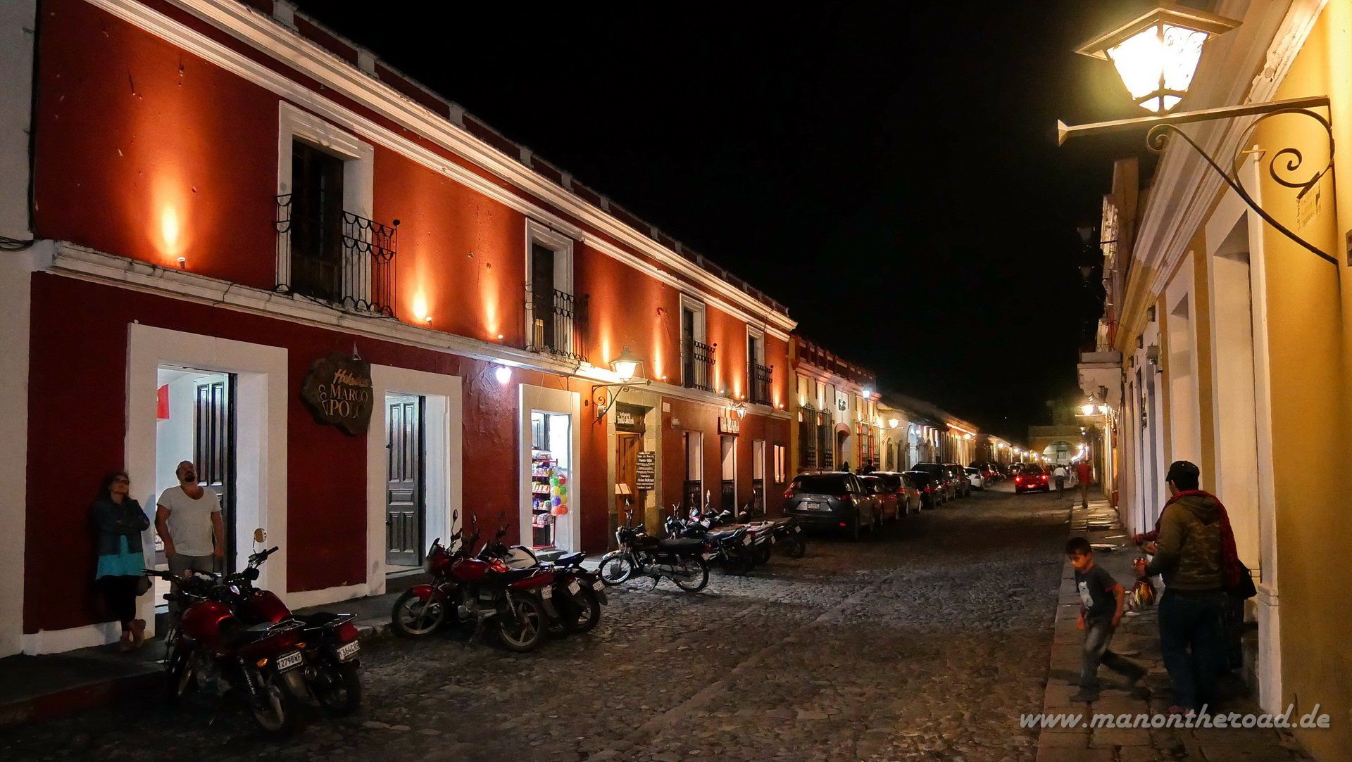 Noch ein letzter gemeinsamer Restaurantbesuch und ein schöner Nachtbummel durch die Stadt, bevor wir am nächsten Tag David und Claudia zum Flughafen in Guatemala Ciudad bringen.