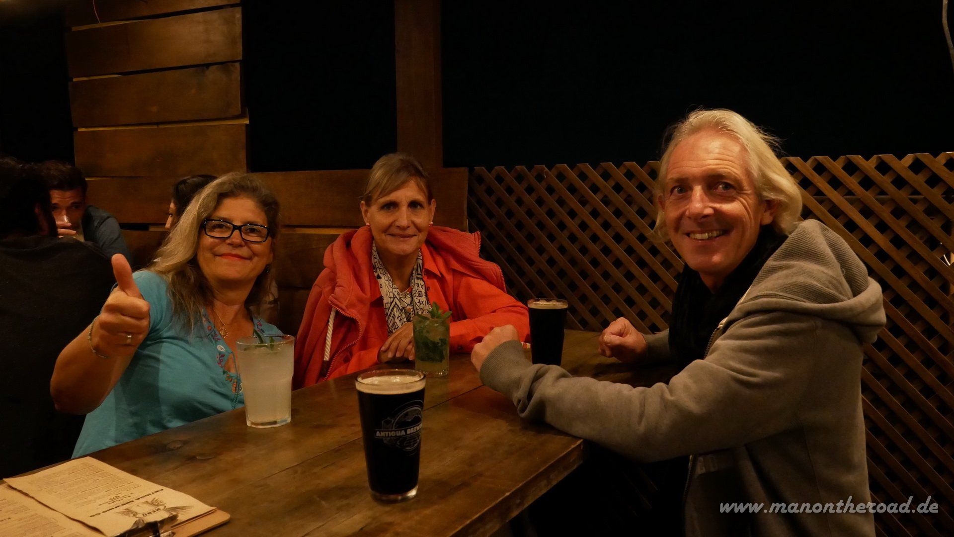 Eine echt urige Sportsbar mit hausgemachter Limonade und gutem Bier bietet uns das Gesuchte. Da ich ja seit vielen Jahren keinen Alkohol mehr trinke, bestelle ich mir kein Bier, sondern eine Limonada doble im Glauben, dass es sich hier um eine doppelte Menge hausgemachter Limonade handelt. Diese schmeckt auch ganz vorzüglich, so dass ich das große Glas in kürzester Zeit heruntersüffele und gleich ein weiteres ordere. Während das 2. Glas auf dem Weg ist, fühle ich mich von einer Sekunde zur nächsten stinkbetrunken. Wir erkundigen uns beim Wirt, was denn in der Limonada doble so drin ist und erfahren: ¨Eine doppelte Menge Rum natürlich!¨ Claudia und David lachen sich schier tot und ich bin also zum ersten Mal seit ca. 8 Jahren richtig betrunken. Wir verbringen einen superlustigen Nachmittag mit sehr vielen Bieren in der Kneipe und erleben den Sieg der deutschen Nationalmannschaft in allerletzter Minute.