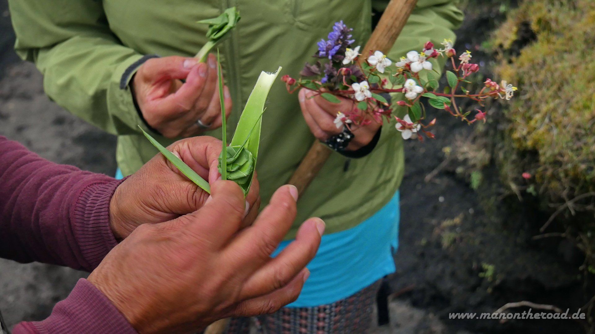 Da mein Fuss noch dick ist und beim Gehen doch noch schmerzt, lasse ich mich den langen und steilen Weg hoch zum Pacaya auf dem Rücken des Pferdes ¨ Chocolate ¨ und in Begleitung des Pferdeführers, seines Hundes, sowie unserer weiblichen Guia (Führerin) nach oben bringen. Michael schnauft sich zu Fuss den Weg nach oben hinauf. Oben angekommen verhüllt sich der Vulkan leider ganz im dichten Nebel. Die nette Guia zeigt mir jedes Kraut und erklärt mir jede Pflanze. Ich verstehe leider nicht alles, aber das Meiste schon.
