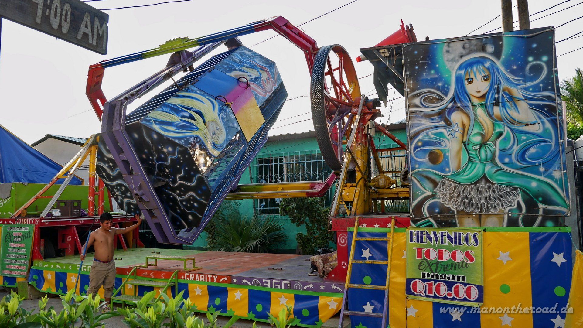 Zum Abschluss geht es nach Monterrico an der Pazifik-Küste. Dort können wir direkt am Strand mit dem MAN stehen und übernachten. Wir bummeln durch den Ort in dem gerade eine Rummelplatz aufgebaut wird. Die Fahrgeschäfte sehen für unsere Augen mehr als abenteuerlich aus!